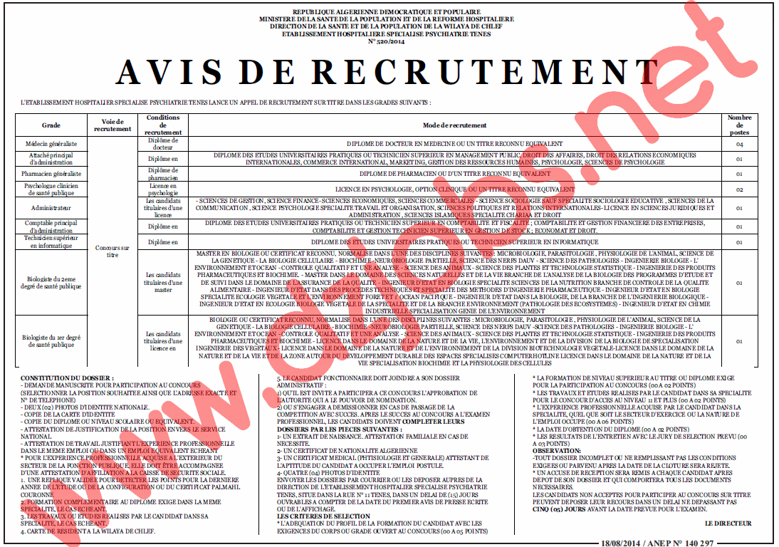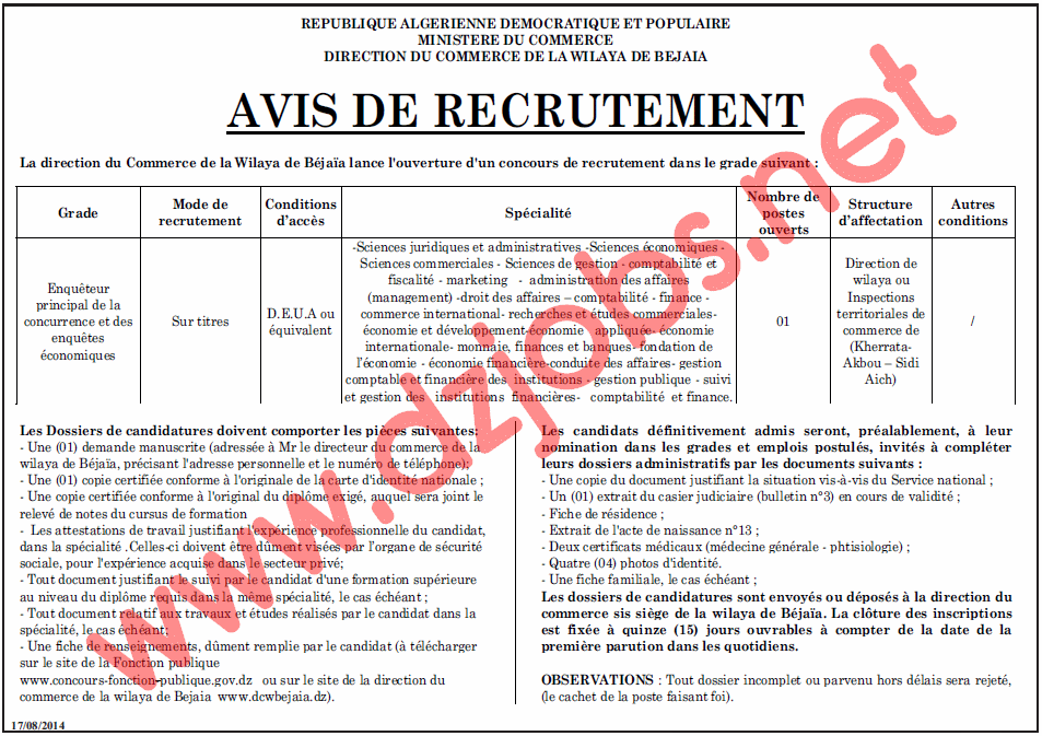 إعلانات التوظيف الصادرة في الوظيفة العمومية الصادرة في الجرائد اليومية الخاصة بشهر أوت 2014