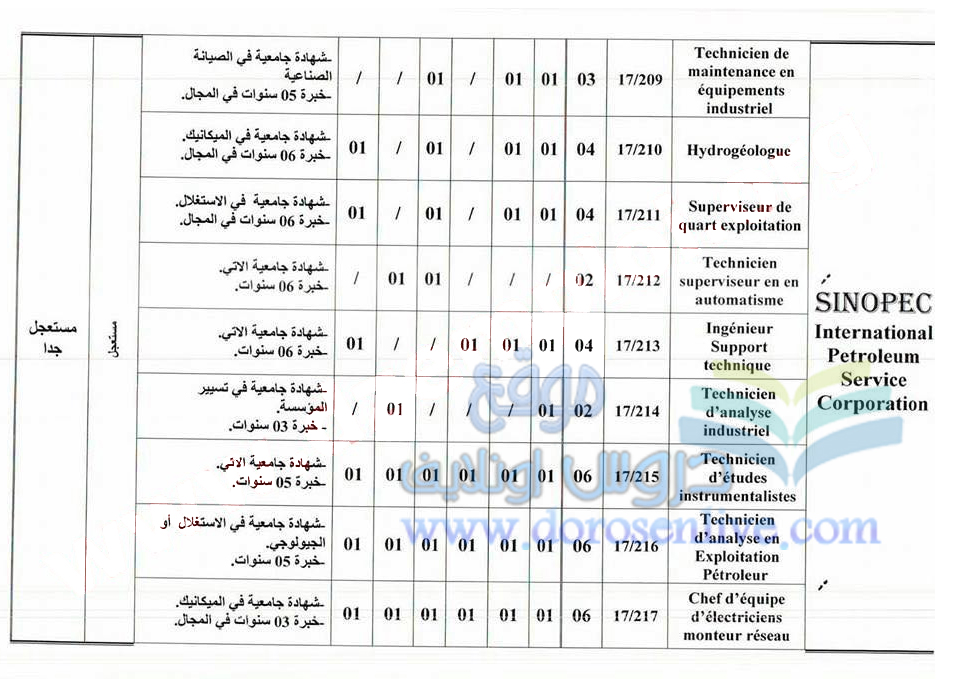 إعلان توظيف 263 منصب في شركة سينوباك للبترول بشكل مستعجل بولاية إليزي أفريل 2017