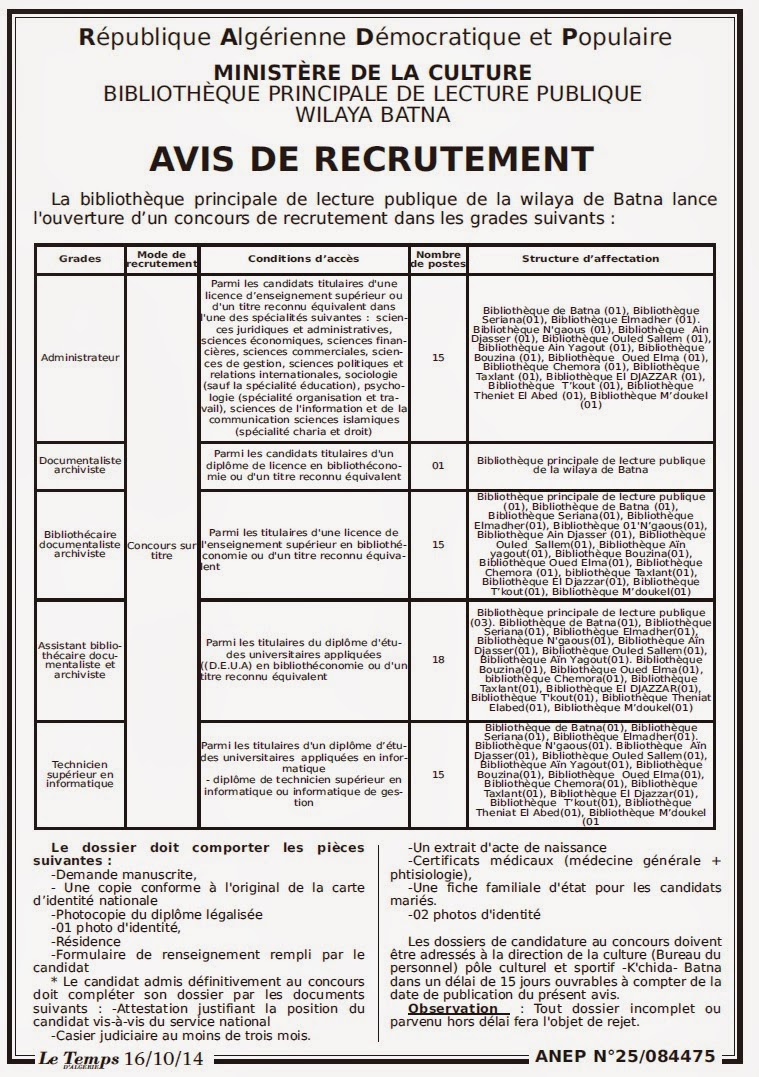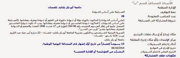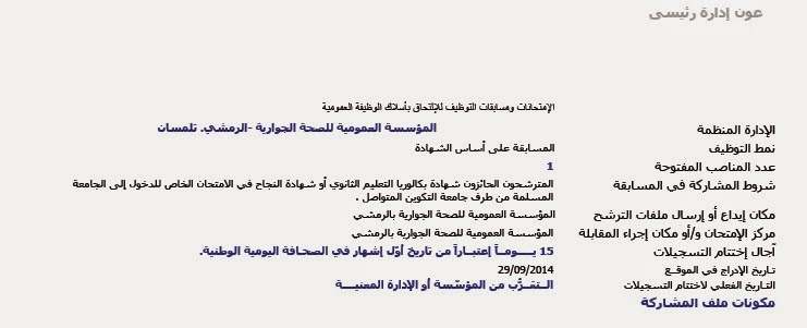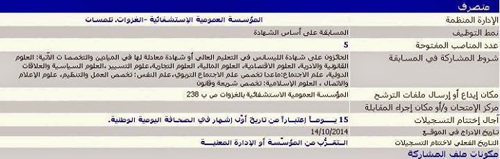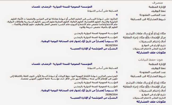 إعلانات التوظيف الصادرة في الوظيفة العمومية الصادرة في الجرائد اليومية الخاصة بشهر أكتوبر 2014