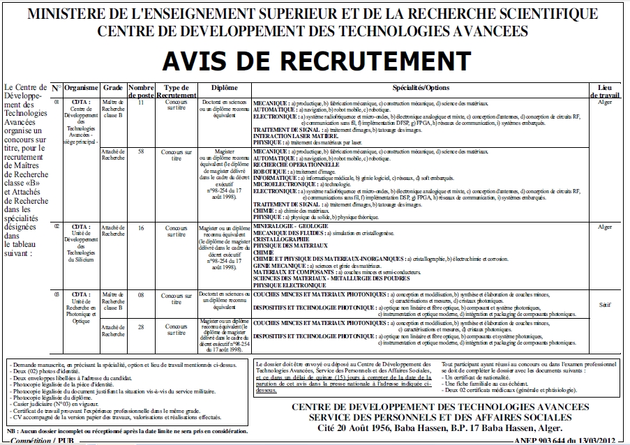 الإعلانات المصورة لمسابقات توظيف الأساتذة المساعدين و الباحثين 2011-2012