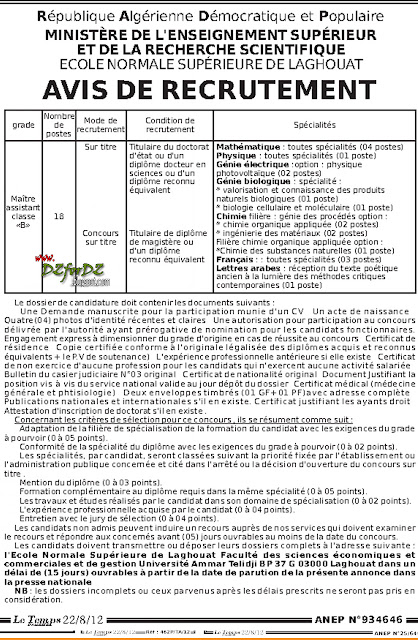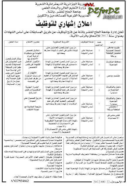 ÅÚáÇäÇÊ ÇáÊæÙíÝ Ýí ÇáæÙíÝÉ ÇáÚãæãíÉ ÇáÕÇÏÑÉ Ýí ÇáÌÑÇÆÏ ÇáíæãíÉ