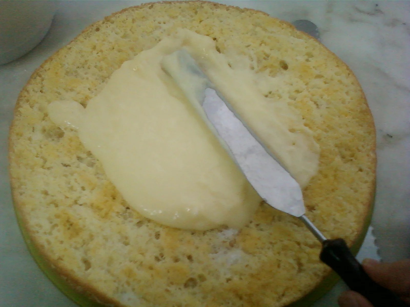 و هاذي درتها لعيد ميلاد زوجي ربي يحفظو و يعيشو ليا و الأولاد أولا التارت فيها 2 قرصات ، مقادير القرص الواحد هي: * 5 بيض *125غ سكر عادي *60غ فرينة *65غ نشاء *1 خميرة القاطو *قشور الليمون الطريقة: في خلاط كهربائي نطلع بياض 5 بيضات+125 سكر كالثلج، بعد ذلك نضيف 5 صفار و نخلط بهدوء باش مايهبطش البياض+ **فرينة+نشاء+خميرة** مغربلين باش يدخل الهوا و نخلط برفق حتى نتحصل على خليط متجانس ثم نفرغه في مول مدهون بالزبدة و مرشوش بالفرينة و نطيبها مثل المسكوتة أي نار هادئة و الفرن لا نفتحه أثناء الطهي و نتركها حتى تصبح ذهبية اللون و نخليها تبرد *** نعيد الكرة و نخدمو القرصة الثانية و نخليوهم يبردو بعد ذلك كل قرصة نقسمها على 2 من الوسط فبذلك نتحصل على 4 قرصات تحضير الكريمة: بعيدا عن النار نخلط في كسرونة: 1 لتر حليب+6 صفار بيض+6 م ك نشاء+1 م ك زبدة+سكر عادي حسب الحلاوة "كل واحد يدير على حساب الذوق" ثم نضعها عل النار و نحرك لكي لا تلتصق حتى تصبح كثيفة ثم نبعدها عن النار و نضيف عصير و برش ليمونة و نتركها جانبا حتى تبرد أثناء ذلك نحضرو الكريما نبداو نسقيو الطبقة الأولى بالشاربات بارد ثم ندهنها بالكريمة ثم نقطع حبة موز من فوق ثم نضع فوقها الطبقة الثانية و هكذا حتى نصل إلى الطبقة الرابعة و الأخيرة ندهنوها بالكريمة طبقة خفيفة فقط بعد ذلك نحضر la crème chantilly بخفق 200 غ غبرة الشونتيي+2 كيسان حليب بارد جدا حتى تصبح كثيفة ثم ندهن التارت كامل بالشونتيي حتى تتغطى ثم نعمر كيس الحلواني و نبدأ التزيين أتمنى أن ينال التارت إعجابكم