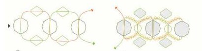 كذلك الحال بالنسبة للصف الذي يليه ، لعمل الخرزة رقم 19 نقوم بالتنقل من الخرزة رقم 18 الى الخرزة رقم 1 كما في الرسم البياني ادناه.
