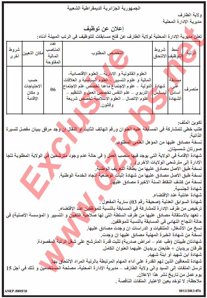 وجدته في موقع الوظيف العمومي سأبحث عن الإعلان و أضعه إن شاء الله |