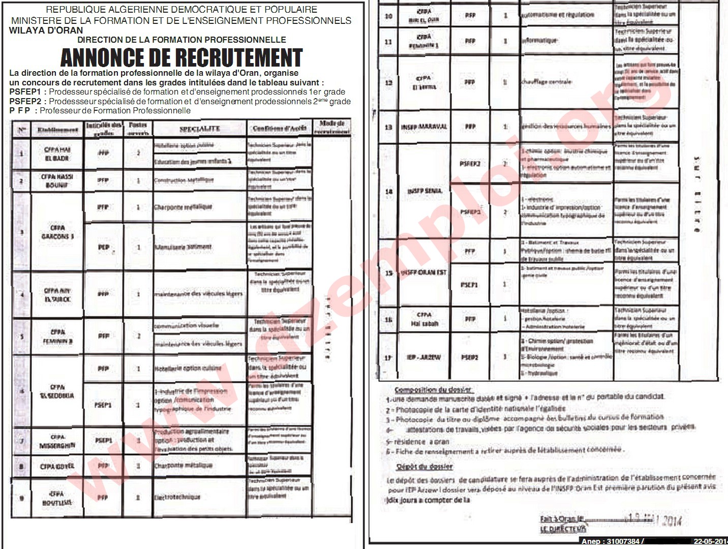 إعلانات التوظيف في الوظيفة العمومية الصادرة في الجرائد اليومية الخاصة بشهر ماي 2014