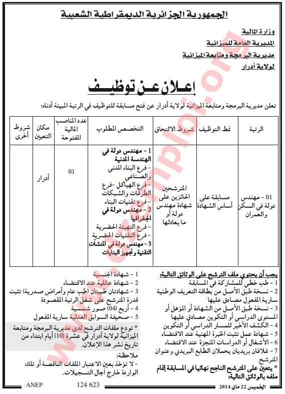 هل من جديد التوظيف ولاية ادرار دائرة اولف |