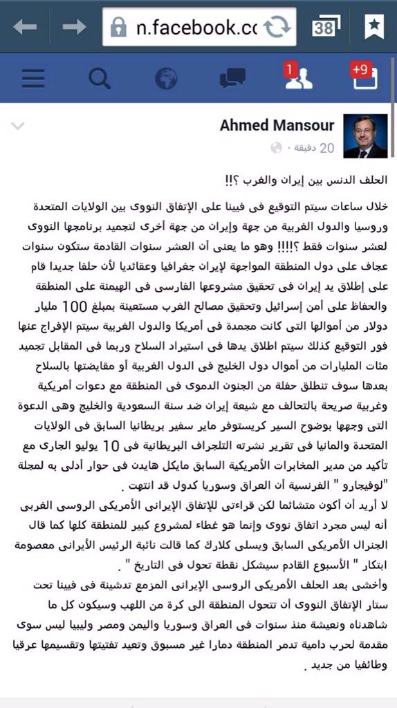 ![]() الصحف العربية النفطية تلطم الخدود بعد اعلان ايران دولة نووية صحيفة المستقبل قالت: الشرق الاوسط بعد الاتفاق غير ما قبله الحاجة المتبادلة إلى اتفاق نووي زائد الواقعية السياسية، أوصلت المفاوضين من مجموعة خمسة زائد واحد من جهة وإيران من جهة أخرى إلى الاتفاق مهما تأخر إعلانه. من الطبيعي أن يكون الطرفان قد قدما تنازلات متبادلة وقاسية. دون ذلك لا يمكن النجاح. واشنطن وطهران بذلتا جهوداً ضخمة للنجاح. الرئيس باراك أوباما يريد التأكيد على أنّه كان يستحق جائزة نوبل للسلام وانّه قد يستحقها مرّة أخرى ربما مع شريكه جون كيري صحيفة الحياة: داوود الشريان: أضعف الايمان اتفاق فيينا يؤجل المصيبة.. ولا يمنعها أخيراً وُقِّع الاتفاق النووي بين إيران والقوى الست الكبرى بعد أكثر من عشر سنين من المواجهة السياسية المتوترة. إيران أصبحت دولة نووية، وبإمكانها بيع اليورانيوم غير المخصّب. وبموجب الاتفاق التاريخي أمس، رُفِعت العقوبات الاقتصادية والمالية والعقوبات على خدمات الطيران المدني، وفتحت إيران صفحة جديدة مع المجتمع الدولي، وبدأت تتحدث عن التحديات المشتركة مع الغرب... صحيفة الشرق الاوسط: الاتفاق النووي يفتح أبواب الشر فعلاً وكما قال مسؤول سعودي لوكالة «رويترز»: «سيكون يوما سعيدا إذا منع (الاتفاق النووي) طهران من امتلاك ترسانة نووية»، فلا أحد في المنطقة والعالم سيرفض الاتفاق ما دام قد نجح في «تجميد» برنامج إيران النووي العسكري وتحويله سلمياً، وهو ما بدا فعلاً من تفاصيل الاتفاق التي أعلنت أمس |