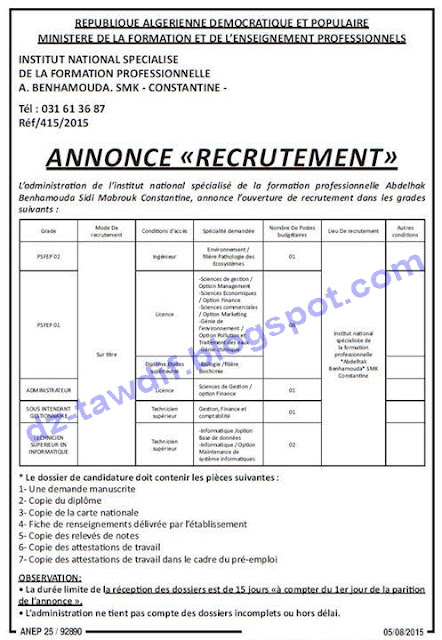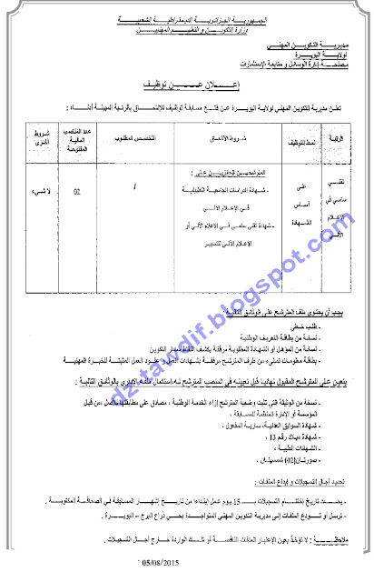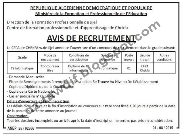 إعلانات التوظيف الصادرة في الجرائد اليومية الخاصة بشهرأوت 2015