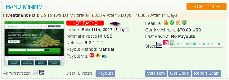 Monitor deposits:$ 54764.60 Monitor deposits (yesterday): $ 773.00 Monitor deposits (today): $ 80.34 هدا احدى المواقع التقيم التي قامت بالاستثمار وانضر حجم استثمارها في الموقع ههههه هناك شخص روسي اضحكني لاني احسست اني سوف القى مصيره لما ربح 200 بتكوين اي حوالي 200 الف دولار اراد سحبها دفعة واحدة ولاكن لم تتم عملية خخخخ بقي يسب في موقع ويقول انه نصاب |