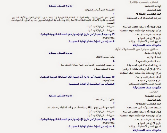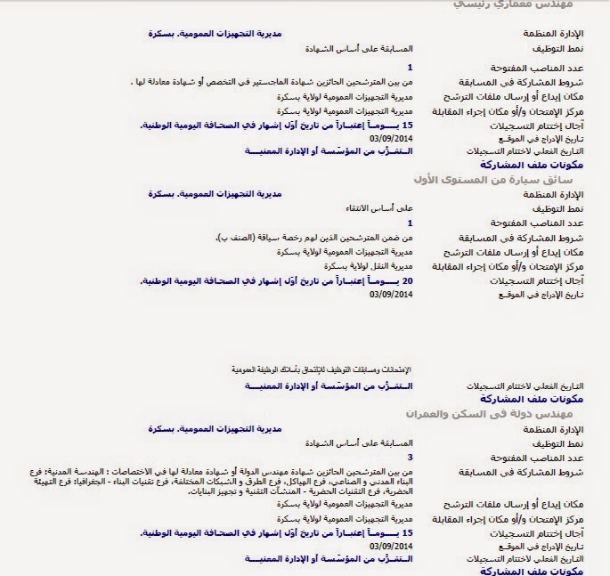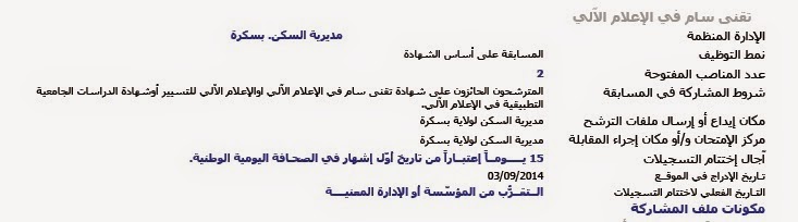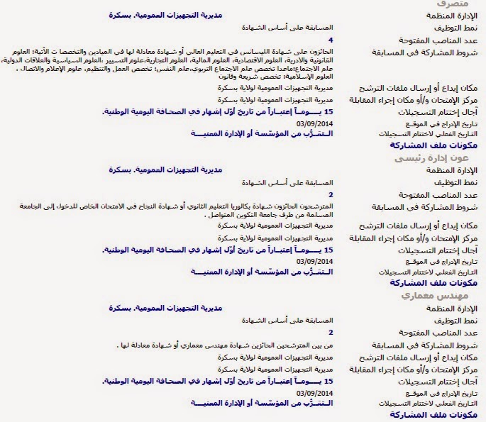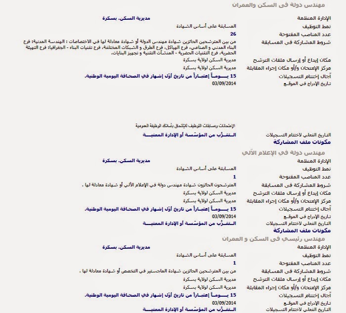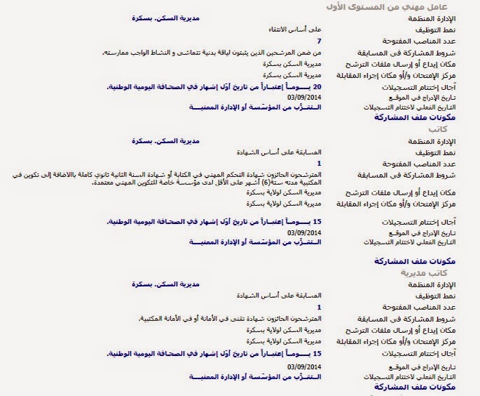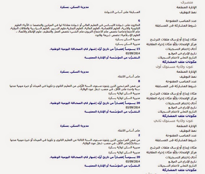 إعلانات التوظيف الصادرة في الوظيفة العمومية الصادرة في الجرائد اليومية الخاصة بشهر سبتمبر 2014