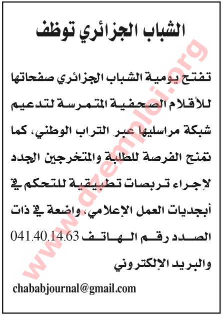 إعلانات التوظيف في الوظيفة العمومية الصادرة في الجرائد اليومية الخاصة بشهر ماي 2014