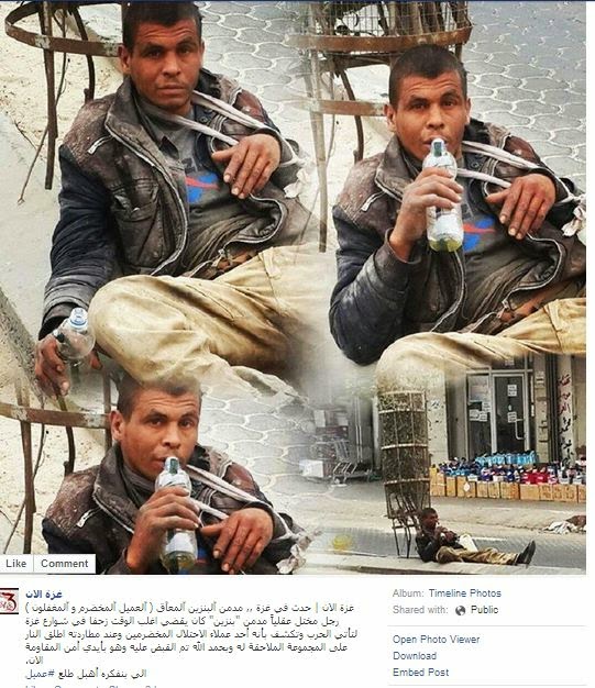 وقالت صفحة "غزة الآن": "(آلعميل آلمخضرم وآلمغفلون) رجل مختل عقليًا، مدمن "بنزين"، كان يقضي أغلب الوقت زحفًا في شوارع غزة، لتأتي الحرب وتكشف بأنه أحد عملاء الاحتلال المخضرمين، وعند مطاردته أطلق النار على المجموعة الملاحقة له، وبحمد الله تم القبض عليه وهو بأيدي أمن المقاومة الآن"