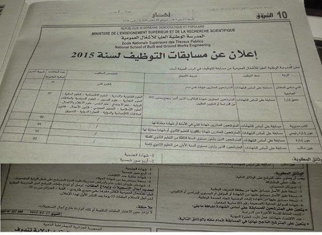 إعلانات التوظيف الصادرة في الجرائد اليومية الخاصة بشهر ماي 2015