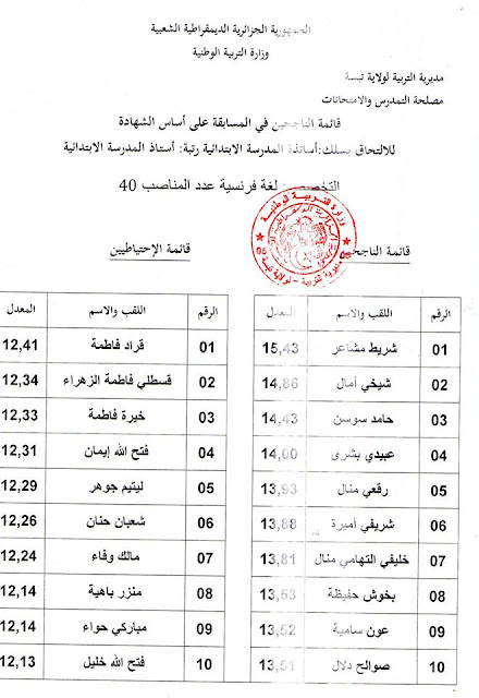 إعلان نتائج مسابقة التربية لولاية ميلة ...... |