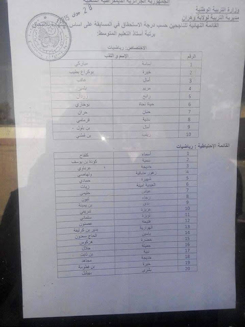 صفحة خاصة بنتائج مسابقة الاساتذة 2015 جميع المديريات