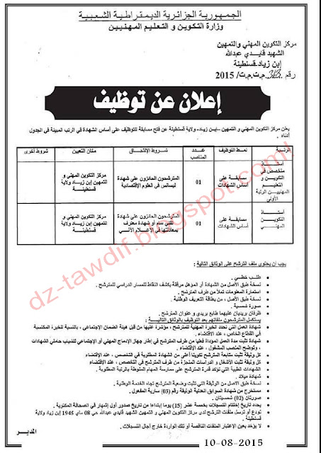 إعلانات التوظيف الصادرة في الجرائد اليومية الخاصة بشهرأوت 2015