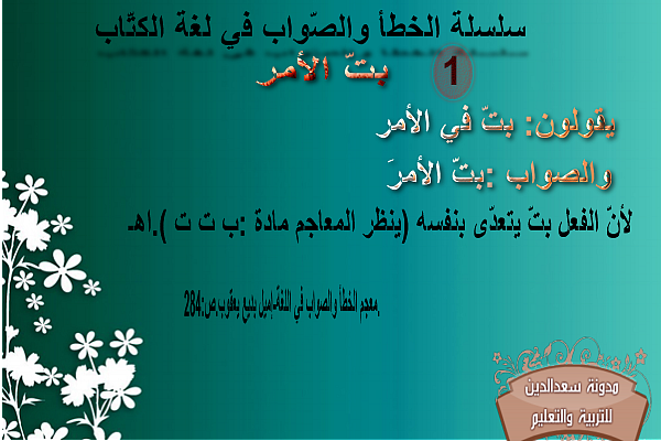 73-قــــل : بتَّ فلان الأمر ....ولا تقــل : بتَّ فلان في الأمر.
