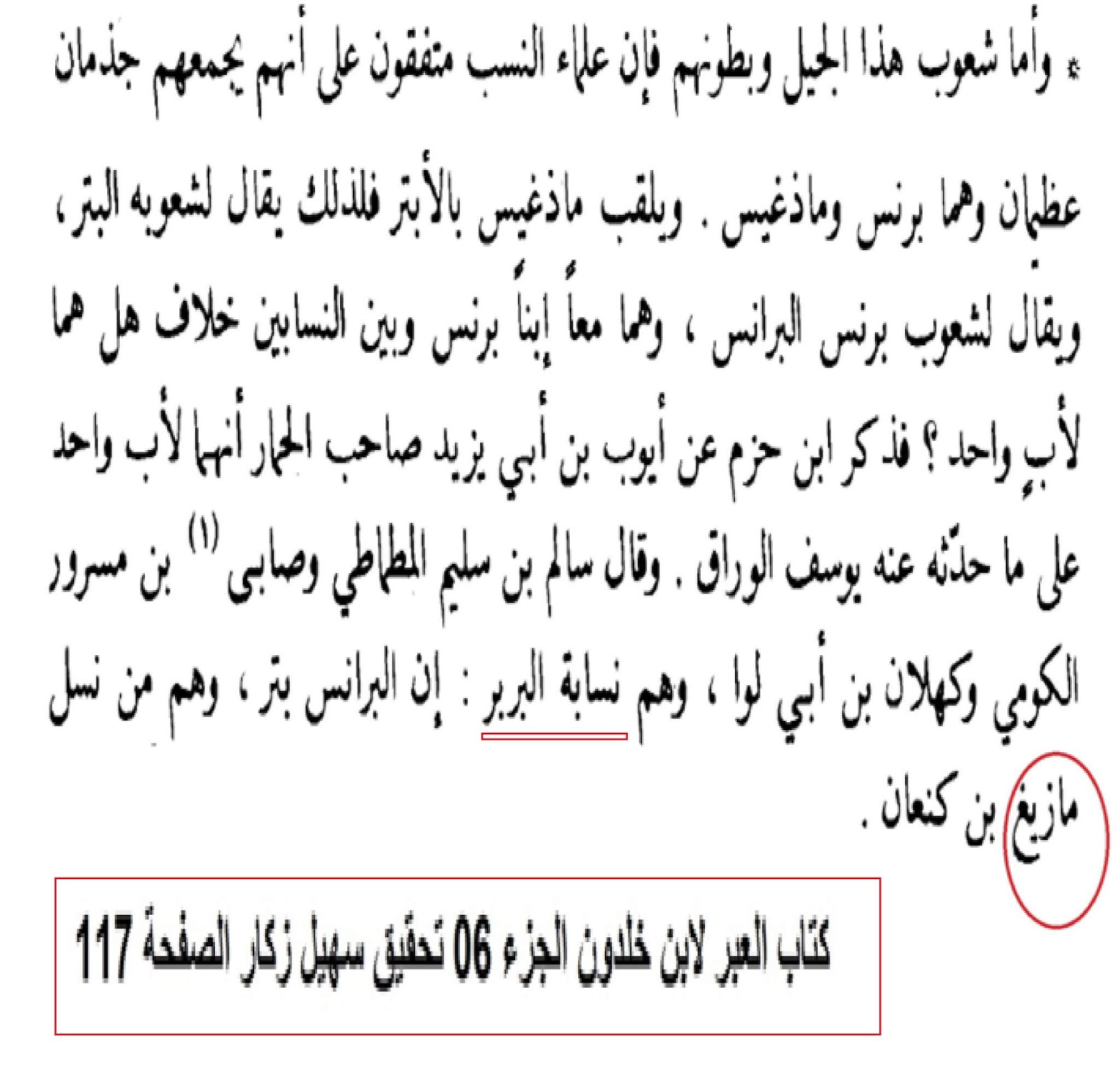 ذكر في كتابه اسم مازيغ كاصل واب لما يسمى بربر شمال افريقيا