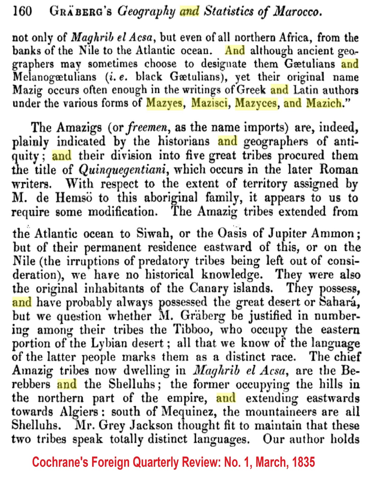 وهذه مراجع اخرى نضيفها الى ما سبق نشره تبين ان كلمة مازيغ موجودة قبل 1830م خلافا لما يدعيه اعداء التاريخ والهوية الامازيغية الاصيلة من فرقة العروبيست