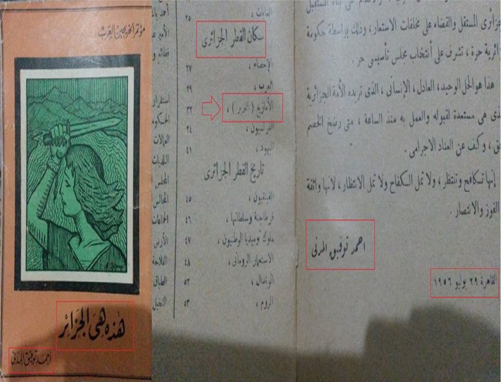 بل و أزيدكم شهادة ابن أول جيل من القوميين العرب في الجزائر ، التوفيق المدني الذي سمى السكان الأصليين للجزائر ( و كامل شمال أفريقية) "بالأمازيغ " في كتابه "هذه هي الجزائر" الذي كتبه في القاهرة قبل سنة 1956 م هل فرنسا هي من علمته و فرضت عليه كلمة " أمازيغ"؟ ؟