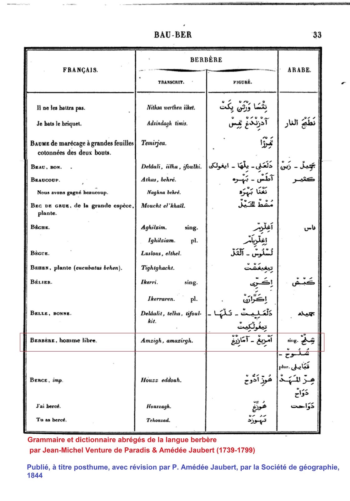 قال احدهم دون علم وعن جهل لا توجد كلمة امزيغ او مازيغ او تمازيغت قبل 1830 واحتج بقوله ان فرنسا هي من اخترعت كلمة امازيغ