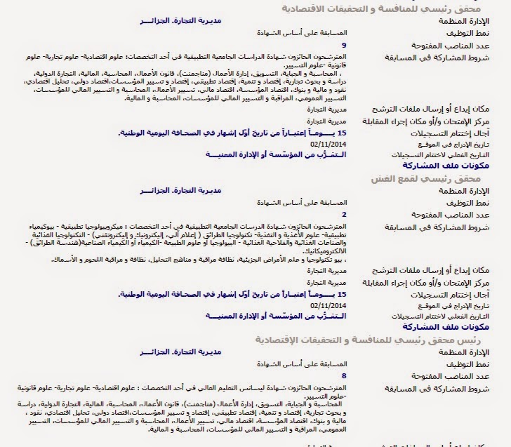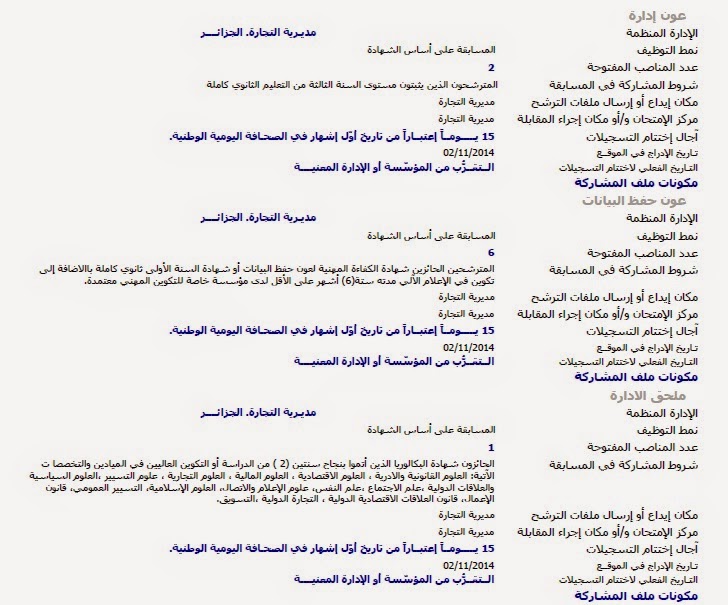 اعلان توظيف مديرية الصجة والسكان - بشار -نوفمبر2014 |