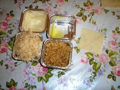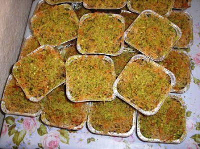 مقادير العجينة 3مقدار طحين 1/2سمن ذائب ماء الزهر +ماء خلط كل المقادير حتى تتحصلى على عجينة خليها ترتاح مدة 20د الحشو 1مقدار لوز 1مقدار جوز 1مقداربندق 1/2مقدار سكر بللى بماء الزهر ![]() حلى العجينة وقطعيها مربعات خدى القوالب ورشيهم بقليل من السمن الذائب ![]() ضعى العجينة +الحشو +القطايف المرشوش بقليل من ماء الزهر وسمن وهذاالشكل النهائى![]() ثم ادخليها الفرن 180د عند اخراجها اسقيها بالعسل (الشاربات ) وانثرى عليها الفستق![]() طريقه بسيطه خالص وسهله لعش البلبل . .. ![]() المقادير.. كنافه طازجه سمنه فستق قطراو شربات ![]() ناخذ شله من الكنافه ونلفها حول اصبعينا زى الى فى الصوره ![]() ![]() ونصفهم بالصينيه جنب بعض حتى تمتلىء كلها ![]() نوزع الفستق على الكنافعه تقريبا معلقه بكل واحده ![]() نوزع السمنه عليهم ولازم تكون غزيره لان احنا هنصفيها بعد لما تستوى ![]() ودى شكلها بعد لما تستوى ونتركها مائلة لتبرد وتنزل كل السمنة وتقدم ![]() عجينة كنافة شعر (الافضل توصي اي مخبز يجيبها لك طازجه)(floo1) سمن اخضر فستق كامل شيرة مقادير الشيره كالتالي 6 أكواب سكر+ 3 ماء+1/2 عصير ليمونة وكم حبة هيل وعود دارسين0 وتخلطط بالملعقة الخشب وتوضع على نار هادئة ولما نضع الملعقة ويظهر لنا خط مستقيم معناه استوت الطريقة: طريقه عمل اعشاش البلبل نأخذ خصلة من عجينة الكنافه ونمسحها بالسمن ونلفها على السبابه والوسطى حتى تتشكل شكل العش ، ومن ثم ترص في صينية.. نخلط الفستق بقليل من الشيره ومن ثم يوضع داخل الاعشاش006 وتدخل الفرن حتى تحمر و من ثم تخرج من الفرن وتسقى بالشيره وبالعافيه(003) .. ممكن نستخدم اي نوع من المكسرات بدل الفستق وومكن نضع بدال المكسرات قشطه بيتيه اول شئ مقادير الشربات او القطر 2 كوب سكر 1 كوب ماء فانيليا او اى منكهات تفضليها عصي ليمونه صغيره نضع السكروالماء على النار ونقلبهم لغايه مايغلى وبعدين نضيف الفانيليا وعصير اليمون ونسيبهم على النار حوالى 5 دقائق وبعدين نسيبه يبرد تماما اولا كنافه عش البلبل على طريقتى طبعا اول شئ نجيب الكنافه وقطعها قطع صغيره ونضيف عليها الذبده السايحه ![]() ![]() نضعها فى قوالب الكب كيك من غير مانضغط عليها ونحاول نعمل لها جوانب بسيطه ![]() ![]() نضع الفستق صحيح كأنه بيض وممكن ندخلها الفرن من غير الفستق عشان تأخذ شكل الطبق ![]() نضعها فى فرن متوسط الحراره او اقل قليلا لغايه ما تتحمر الكنافه نخرجها من الفرن ونسقيها فورا الشربات او القطر البارد ![]() ![]() ودى انا كنت حطيت لوز بدل الفستق ![]() ![]() ![]() واللى عملناها شكل الطبق حطينا فيها قشطه وزيناها بالفستق المجروش وممكن نعملها مينى تارت ونضع فيها كسترد ونزينها بالفواكهه ![]() ![]() مينى كنافه1 نضع الكنافه المخلوطه بالذبده السايحه فى قوالب الكب كيك و نضغط جيدا بكوب ![]() ممكن نسيبها كده ندخلها الفرن ![]() ![]() وممكن نضع مكسرات او قشطه ونضع طبقه اخرى من الكنافه ونضغط مره اخرى ![]() ![]() نضعها فى فرن متوسط الحراره او اقل قليلا لغايه ما تتحمر الكنافه نخرجها من الفرن ونسقيها فورا الشربات او القطر البارد ![]() ![]() نطلعها ونقلبها ونزينها بالفستق المجروش ![]() ![]() ![]()