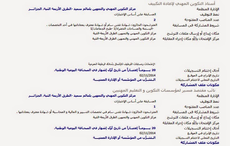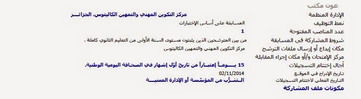 إعلان توظيف بجامعة التكوين المتواصل عدة ولايات أكتوبر 2014 |
