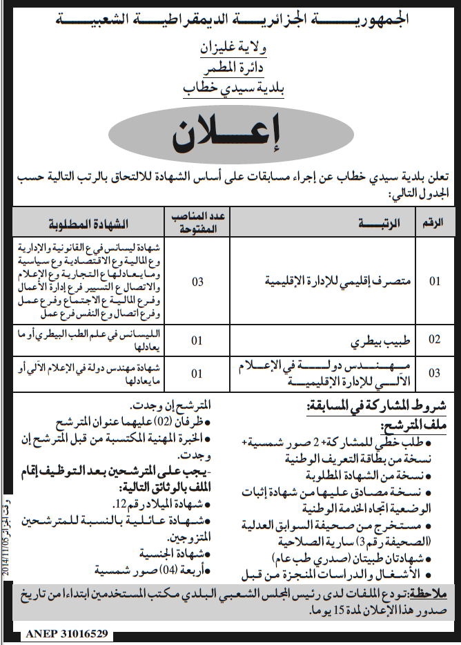 إعلانات التوظيف الصادرة الصادرة في الجرائد اليومية الخاصة بشهر نوفمبر 2014
