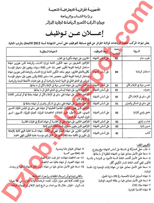 مسابقة توظيف في ديوان المركب المتعدد الرياضات لولاية الجزائر