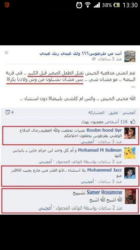 لقد فتح العلويون أبواب جحيم على انفسهم فقريبا جدا ستكون المفخخات والعبوات في أسواقهم وأماكن تجمعهم ومعابدهم وسيبعثون على حسب نياتهم -كما قال البعض-فعندها سنستمتع نحن بصراخ المجتمع الدولي والمنظمات الحقوقية حول الارهاب وحماية الأقليات واحترام القوانين الدولية وحماية المدنيين .