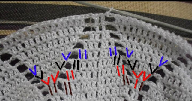 هنا اشتغلت سطرين نفس اخر سطر , و كملت باقي الطاقيه بغرزة العمود و ختمت الطاقيه بسطر حشو ..