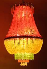 هذه الثريا المصنوعة من آلاف و آلاف من صمغ الدببة هي حلوى مطاطية على شكل دببة. شخص ما كان له الكثير من الوقت ليقوم بتصميم هذ الثريا من صمغ الدببة. أتساءل عما إذا كانت صمغ الدببة تطارد أحلامهم؟ مقاييس هذا العمل الفني 45 "× 21" × 21 "وعلى ما يبدو يمكن أن تستمر لمدة تصل إلى سنتين. ومن الملحوظ أن الفنان كان قادرا على اكتناز ما يكفي من صمغ الدببة لإكمال هذا الكيان!