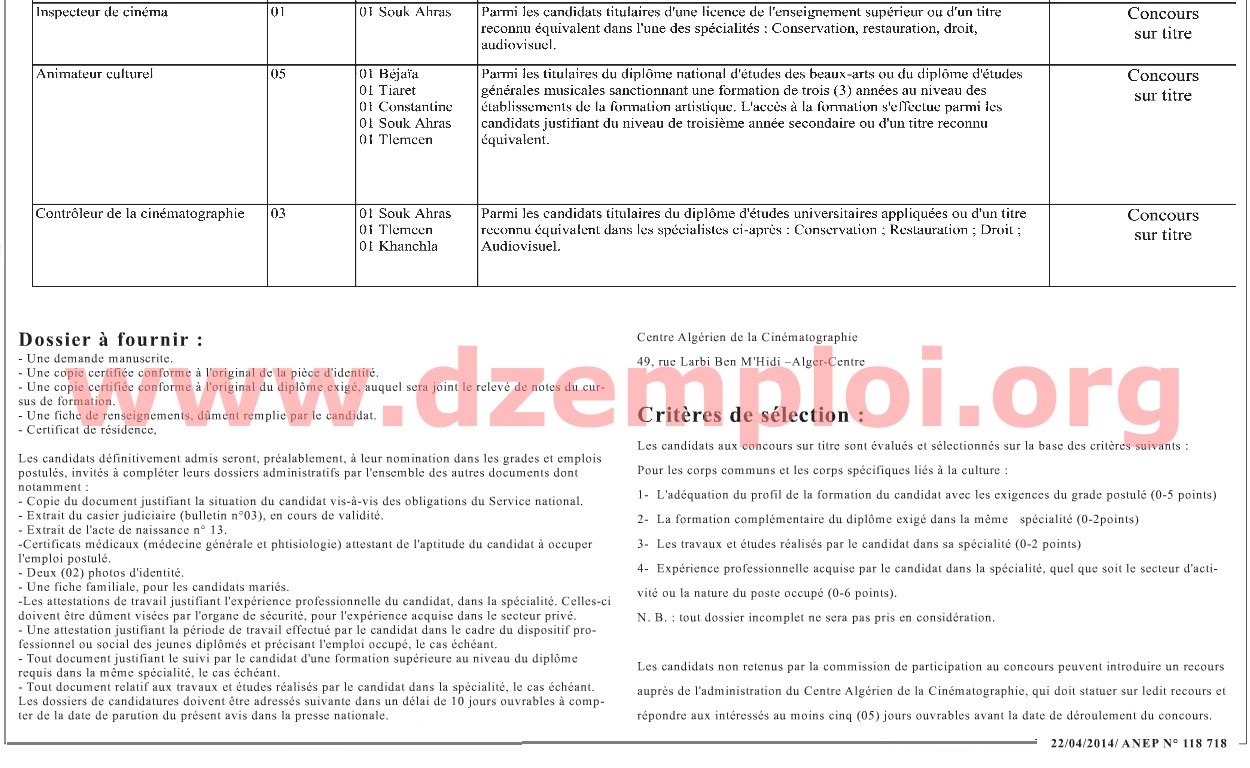 | للتزوير, منصب, المركز, الجزائري, السنمائي, يوظف, ولايات |