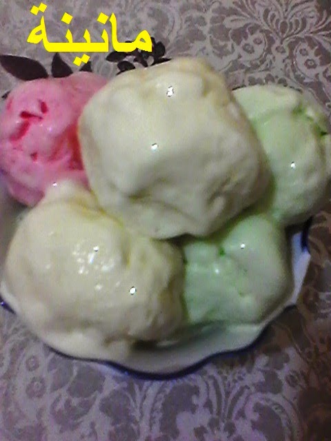 بسم الله والصلاة على رسول الله السلام عليكم ورحمة الله ايس كريم ذوق رائع بثلات الوان المقادير : 1. لتر حليب – كاس " الكاس عوضيه كريمة سائلة " .1 ملعقة اكل حليب بودرة .1 ملعقة اكل جليكوز .سكر حسب الذوق .1/2ملعقة قهوة مثبت ايس كريم .قشدة سائلة .8 صفار بيض .فانلا طريقة التحضير: الخليط الاول : ناخد الحليب السائل +كاس الكريمة +السكر +الجليكوز +حليب البودرة +الفانلا على النار حتى يصير دافىء نبعده عن النار. الخليط الثاني : نخلط سكر مع المثبت ثم نضيفهم للصفار. نمزج الخليط الاول مع الثاني نعيده الى النار مع التحريك المستمر حتى يعقد نبعده عن النار يترك ليبرد. ثم ندخله الثلاجة ليلة كاملة. ناخد 2 كيلات من الخليط النهائي مع 1كيلة من الكريمة السائلة المخفوقة و نمزجهم مع بعض ثم نقسمه الى 3 1 ذوق موز لون اصفر 2 ذوق فراولة لون وردي 3 ذوق بيستاش لون اخضر ندخله المجمد ملاحظة 1:قبل الاستعمال نخرجه من المجمد ويزين بقطع من الفراولة 2 :السكر حسب الذوق .