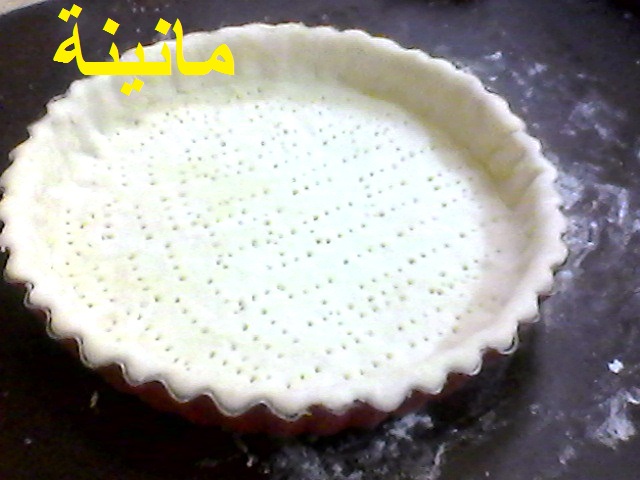 ![]() بسم الله والصلاة على رسول الله السلام عليكم 1. 250غ فرينة ''دقيق'' نوع جيد 2. 1بيضة حجم صغير 3. 150 غ زبدة التوريق 4. قرصة ملح 5. 2 ملاعق اكل عصير ليمون 6. ماء بارد الحشـو : 1. قطع دجاج متبقي من وصفة سابقة 2. ملح 3. جبن ابيض 4. 1 ملعقة ارز مغلي 5. كريمة سائلة 6. 4حبات بيض 7. جوزة الطيب 8. فلفل اسود 9. معدنوس 10. جبن مبشور التزيين: *حبات طماطم *قطع خيار طريقة التحضير: 1.العجينة: نخلط الفرينة +الملح +الزبدة المجمدة المبشورة ثم نجمعهم بخليط ''الماء+ عصير الليمون +1 بيض '' بدون عجن المكونات نتركها ترتاح في الثلاجة من الصباح الى المساء . نحل العجينة ثم نضعها في المول ونقوم بوضع ثقوب عليها بواسطة شوكة . 2.الحشــو : قطعي الدجاج قطع صغيرة اضيفي + الارز +الجبن الابيض +الفلفل +المعدنوس+ جوزة الطيب +الملح من جهة اخرى نخلط البيض + الكريمة السائلة +الملح +فلفل اسود +جوزة الطيب +المعدنوس. ناخد العجينة ندخلها الفرن 10 دقائق ثم نخرجها نضع عليها طبقة من الجبن المبشور الدجاج ثم نفرغ خليط البيض . بعد ما تنضج نقطعها ونزينها بوردة من حبة الخيار والطماطم .