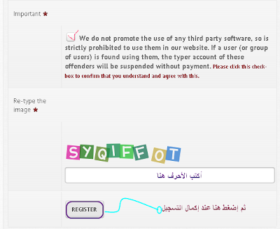 و الصلاة و السلام على أشرف المرسليـن ؛؛؛ الحمد لله وحده نحمده و نشكره و نستعينه و نستغفره ؛؛؛ و نعود بالله من شرور أنفسنا و من سيئات أعمالنا ؛؛؛ من يهده الله فلا مضل له و من يضلل فلن تجد له ولياً مرشدا ؛؛؛ واشهد ان لا اله الا الله وحده لا شريك له ؛؛؛ و أن محمداً عبده و رسوله صلى الله عليه و سلم ؛؛؛ و على آله و صحبه أجمعين و من تبعهم بإحسان إلى يوم الدين؛؛؛ اما بعد ... أسعد الله أوقاتكم بالمحبة و بكل خير اقدم لكم شرح لشركة : Megatypers كيف تربح من الموقع megatypers؟ يقوم موقع megatypers الربحي بإرسال أكواد الكابتشا لأشخاص مثلنا يرغبون في ربح المال (المشتركين) لحل هذه الأكواد ثم يرسلها للبرنامج مرة أخرى للتغلب عليها ويقوم موقع megatypers الربحي بمحاسبة هذه المشترك على كل 1000 كابتشا يقوم بحلها ويختلف سعر ال 1000 كابتشا من ساعة لاخرى, بمعنى سعر الالف كابتشا الساعة 7 هو 55. دولاربينما سعر الالف كابتشا الساعة 17 هو دولار. وهذا الجدول بالأسفل يوضح سعر الكابتشا في كل ساعة على مدار اليوم ![]() 1 - تدعم paypal payza Western Union Perfect Money WebMoney 2 - الدفع عند وصولك لـ 3$ كحد ادني وبيكون الدفع اسبوعي يوم الاثنين الساعة 5:00pm بتوقيت السيرفر 3- ربحك يعتمد على عدد الأكواد التي كتبنها والمدة الزمنية التي تعمل فيها ووقت كتابتها + ممكن أن تربح من 5 إلى 10 دولار يوميا رابط الموقع https://www.megatypers.com -التسجيل - سهل جداا - ![]() ![]() ![]() بالنسبة ل invitation code أكتب bffr أو bfft أو bffu أو bffv أو bfg0 وبدونه لا يكتمل التسجيل 3- شرح لكيفية العمل 1- عداد ينطلق عند ظهور الكود 2-مكان كتابة الكود 3-لتغيير الكود 4-إن لم تتعرف على الكود إضغط عليها 5-لتوقف العمل للإشارة فإن الموقع صادق جداا ويعمل منذ 2007 أيضا بالنسبة لكتابة الكود فلك فقط 15 ثانية يجب أن تكتب فيها وهذا هو العيب الوحيد فيه + هذا ثاني موضوع لي في المنتدى شكرا لكم على المتابعة