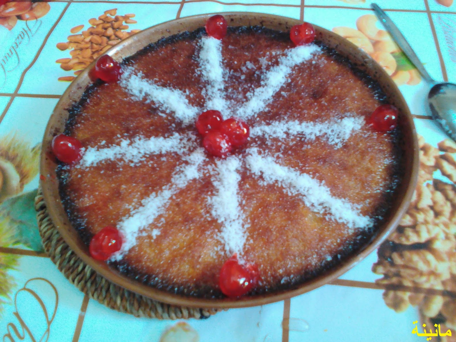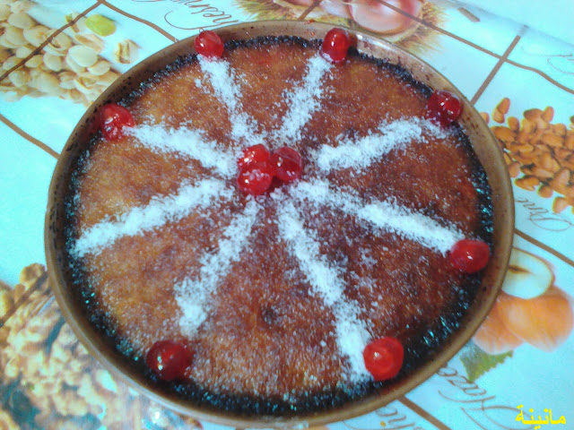 بسم الله والصلاة على رسول الله السلام عليكم الشامية بجوز الهند ''البسيمة '' ![]() المقادير: 1. 50 غ سميد خشن 2. 75 غ سكر عادي 3. 50 غ دقيق '' فرينة '' 4. 125 غ جوز هند 5. 75 غ سمن دايب 6. 1 حبة بيض 7. 50 ممل حليب دافئ 8. فانيلا 9. 1 ملعقة قهوة خمارة الحلوة 10. قشور ليمونة السيرو : 2 كيسان سيرو ثقيل · 200 غ سكر عادي · 200 ملل ماء · عصير ليمونة التزيين: · جوز الهند · كرز مجفف طريقة التحضير: 1. اخلطي المواد الجافة مع بعض جيدا السميد +السكر+جوز الهند +الفرينة +الفانيلا + الخمارة +.... قشور ليمونة ...الخليط الاول 2. اخلطي المواد السائلة مع بعض جيدا السمن + الحليب + البيضة ........الخليط الثاني 3. اضيفي الخليط الثاني للخليط الأول . 4. ادهني صنيية بالسمن . 5. افرغي فيها الخليط . 6. بسطيه باليد . 7. بللي يدكي بالماء ومررها عليه. 8. ادخليه الفرن المسخن مسبقا. 9. اخرجي الحلوة من الفرن بعد 30د. 10. سقيها ساخنة بالشربات ساخن واتركيها تتشرب مليح. 11.زينها بجوز الهند و الكرز مجفف .