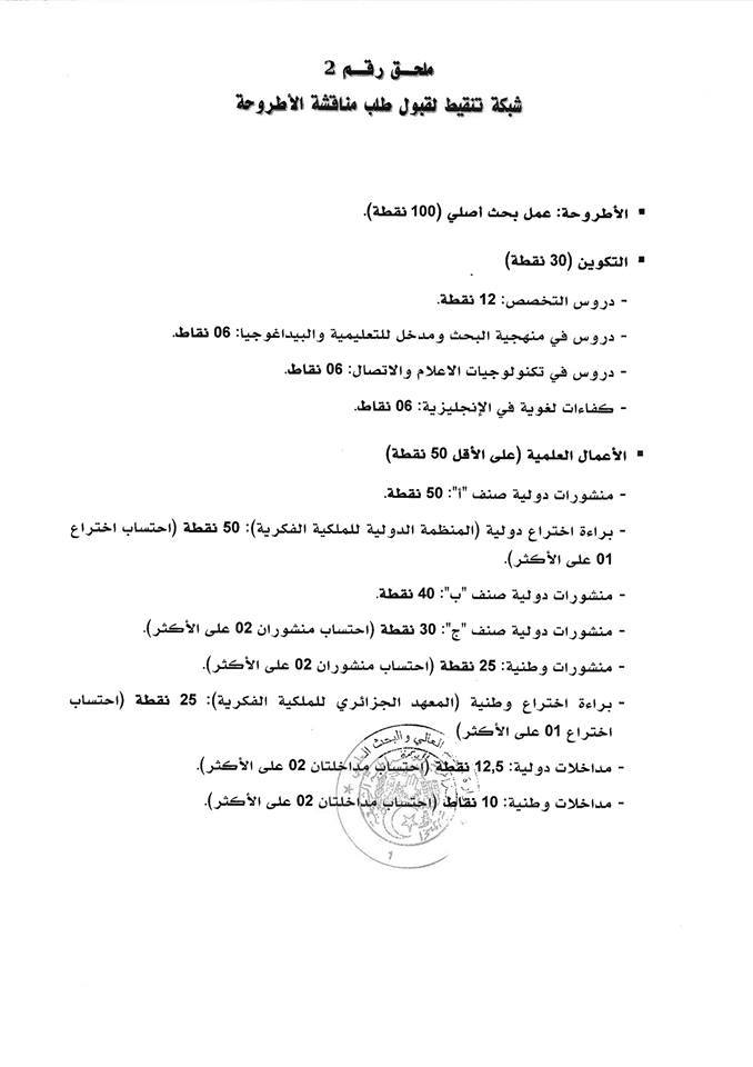 قرار وزاري يحدد كيفيات تنظيم التكوين في الطّور الثالث (الدكتوراه) lmd -- سنة2016 --