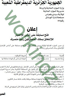 التوظيف مديرية الموارد المائية ولاية سيدي بلعباس ديسمبر 2016