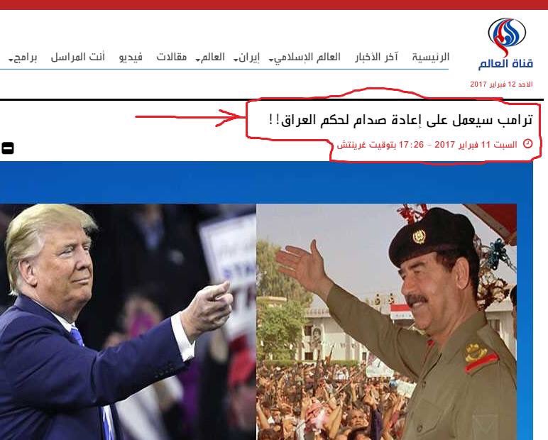 ترمب سيعمل على إعادة صدام لحكم العراق (قناة العالم لملالي ايران ). |