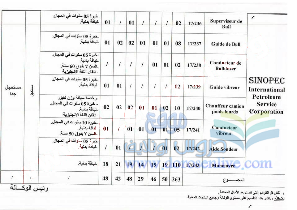 إعلان توظيف 263 منصب في شركة سينوباك للبترول بشكل مستعجل بولاية إليزي أفريل 2017