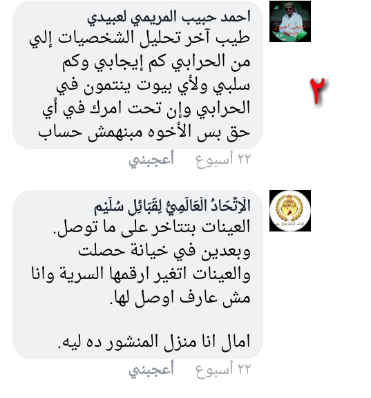 الصورة رقم (٢) : تعليق لوائل بهجت يوضح سبب إستبعاد متولي من وظيفة مسؤول في مشروع بني سليم الجيني لانه قام بتغير أرقام العينات و إخفاء النتائج و يقول بأنه لم يستطع الوصول إليها.