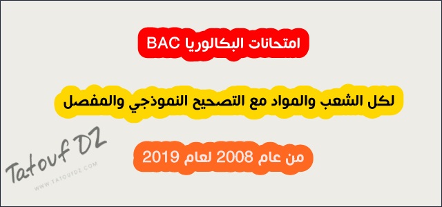 امتحانات البكالوريا لكل الشعب والمواد مع التصحيح النموذجي والمفصل من عام 2008 لعام 2019 بالجزائر